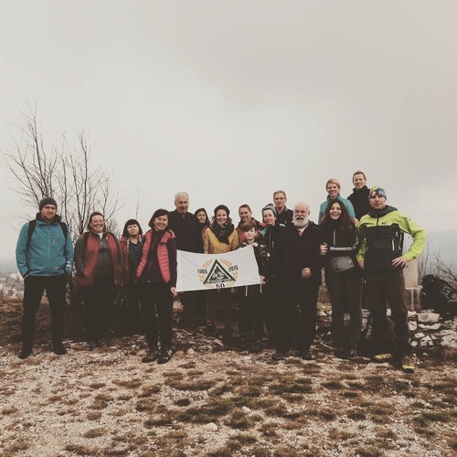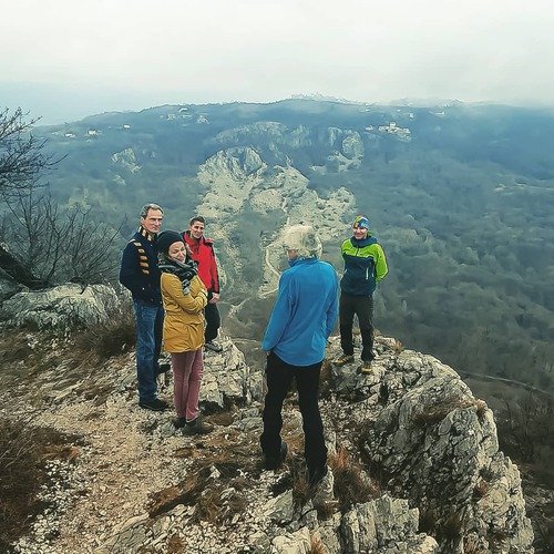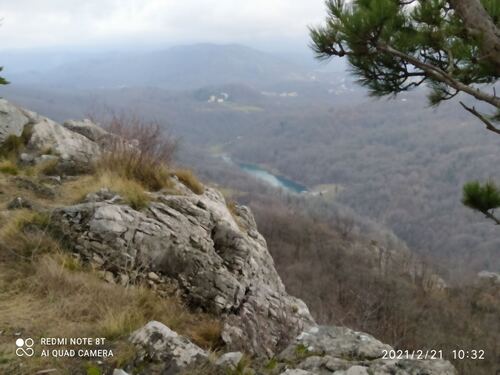 Pogled na kanjon je očaravajuć. Stižemo nakon nešto više od sat vremena laganog hoda do Velog Vrha. Tu je mjesto za ćakule, zalogaje, gutljaje i grupno fotkanje. Većina nas je ugodno iznenađena mogućnostima koje pruža ova šuma toliko blizu grada. Sve u svemu razmjenjujemo dojmove o Velom Vrhu, slušamo i druge planinarske priče, a sve s pogledom na Grad Grobnik. I dalje je maglovito, ali temperatura je dosta visoka iako je tek polovica veljače.