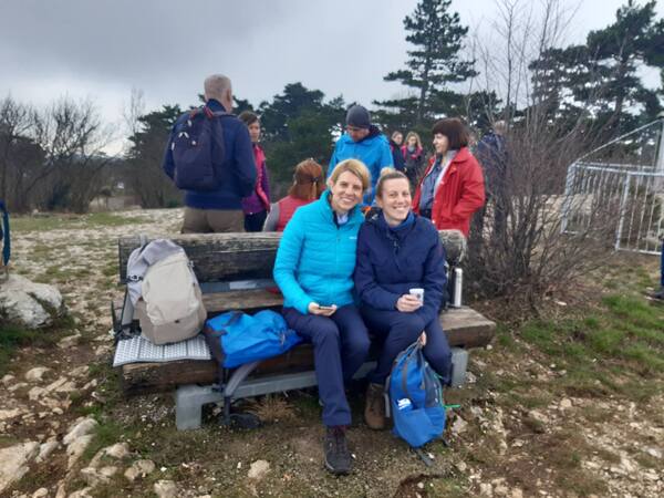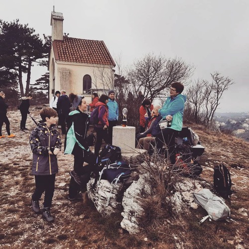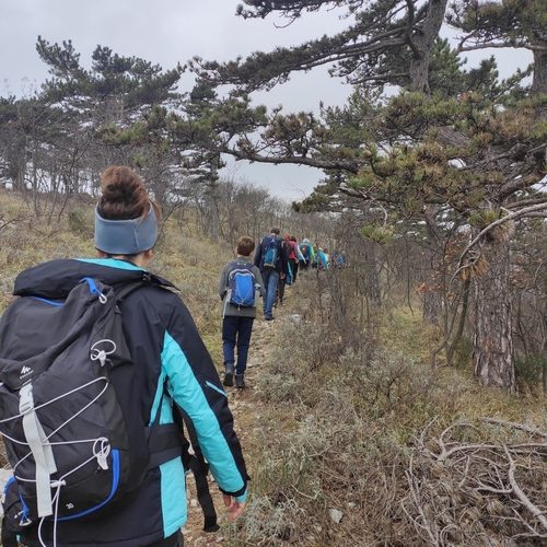 Na kraju se spuštamo do glavne zgrade ove utvrde pa malo dalje od starog libanonskog cedra i s maglovitim pogledom na Rijeku imamo trenutak za drugo grupno fotkanje. Tu se pomalo opraštamo od brda Katarina i vraćamo se prema autima. Napravili smo kružnu turu, razgibali se, podružili i vidjeli i čuli štošta novo, a stižemo i kući na ručak.