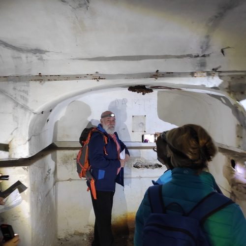 Krećemo prema utvrdi Katarina B. Nakon kraćeg vremena ispred samog smo ulaza u utvrdu. Ako vam nije poznato gdje se ulaz nalazi dosta je dobro sakriven i stopljen s okolišem pa se ranije raspitajte. Dobivamo plan utvrde, stavljamo čeone lampe i spuštamo se stepenicama unutra. Neki su zbog pretijesnog prostora okrenuli leđa par koraka nakon ulaza i otišli nas pričekati na zraku.